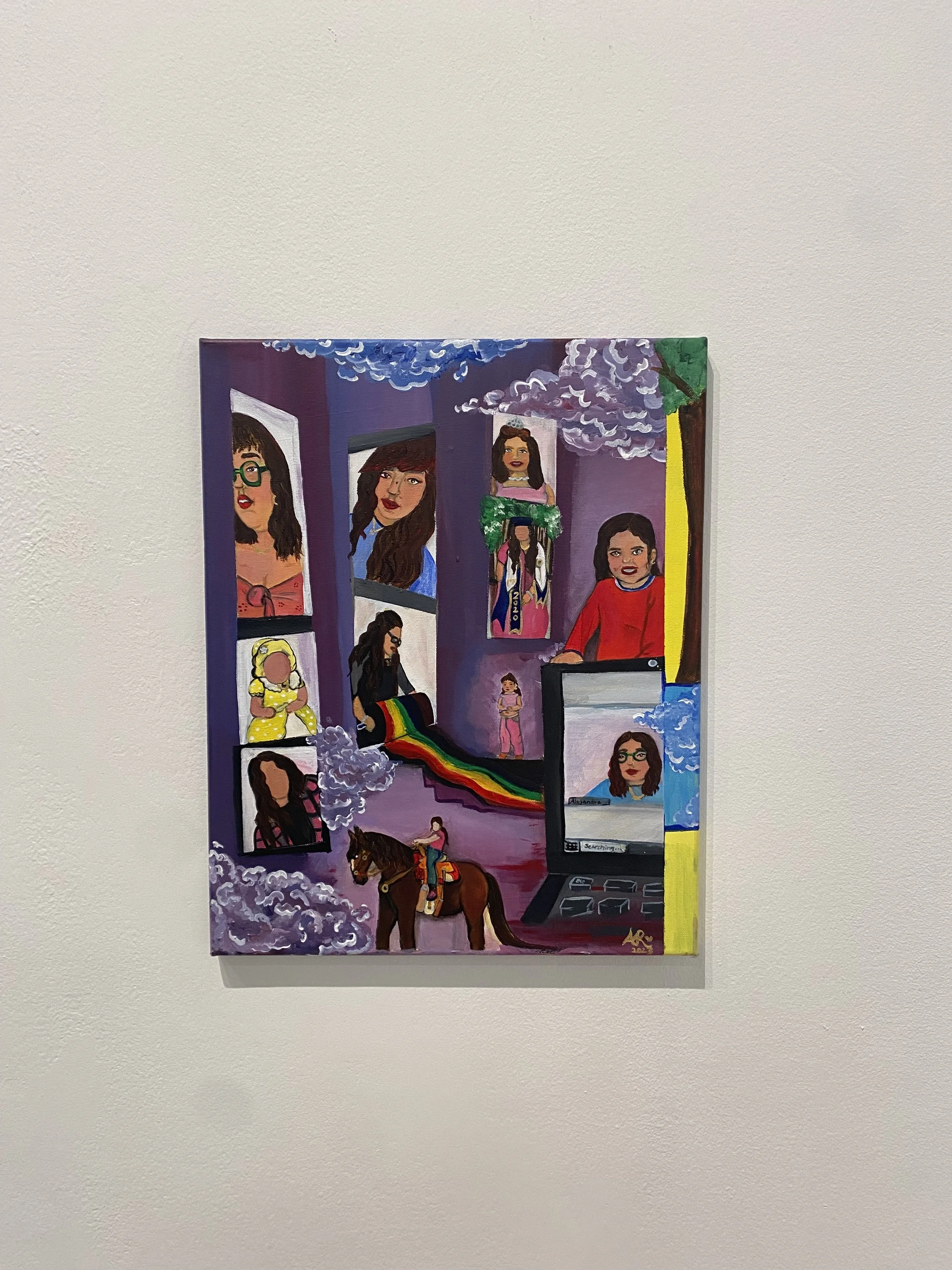 “To all the Me’s I’ve Loved Before…” is a painting that has transformed many times over the course of 3 years. I had the canvas for a while and at the beginning of the COVID-19 pandemic I was looking for ways to process all of the feelings.