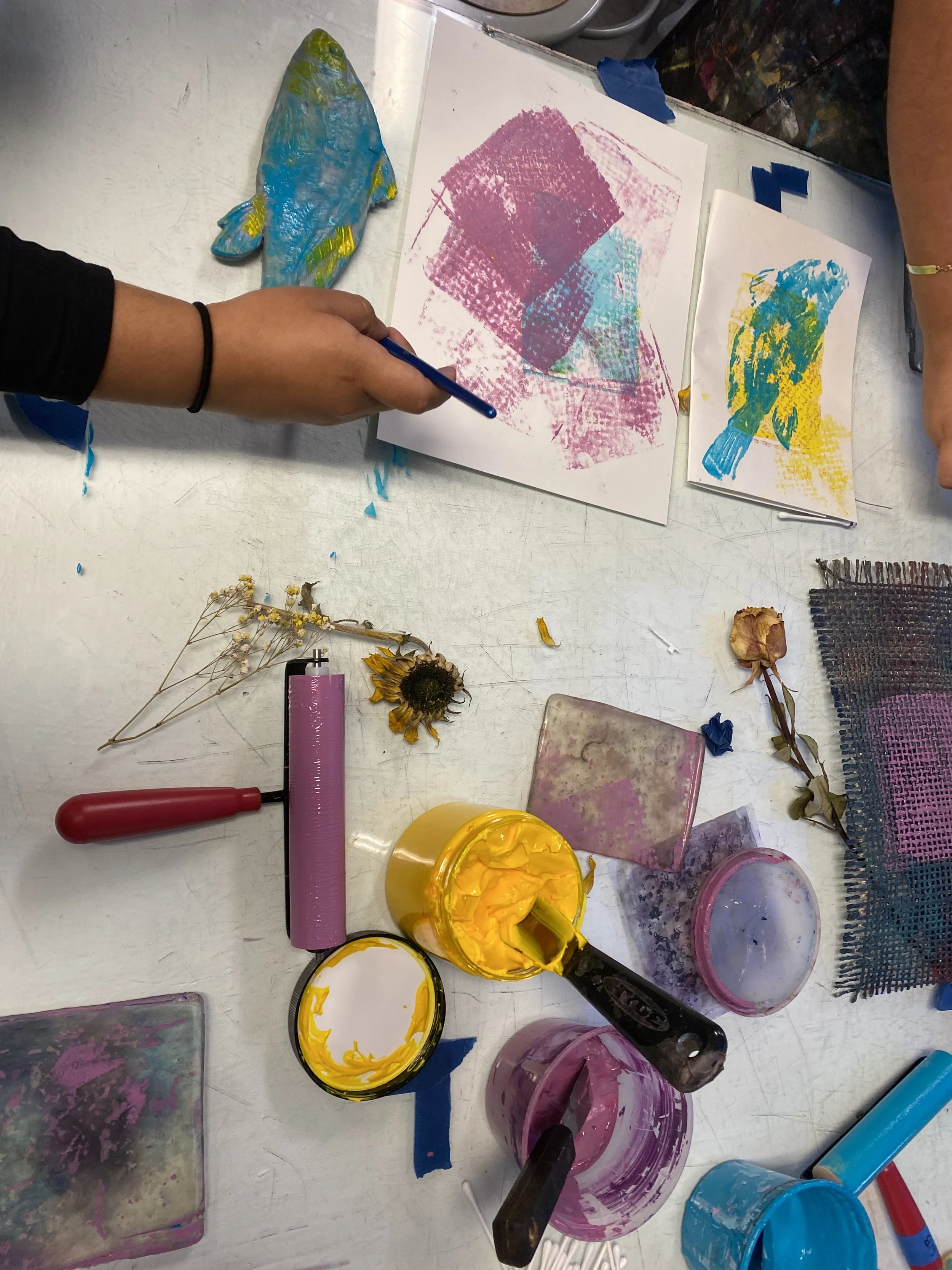 The program took place Wednesday’s from 4pm - 6pm and Saturday’s from 12pm - 6pm. On Wednesday’s we had a guest facilitator speak on their artistic experience or a presentation on a social political issue that impacted our community. Saturday’s were students ‘work’ day where they had access to the entirety of Mission Grafica to develop their work. Students were encouraged to approach in an experimental manner often trying things out in order to see what outcome they could achieve.