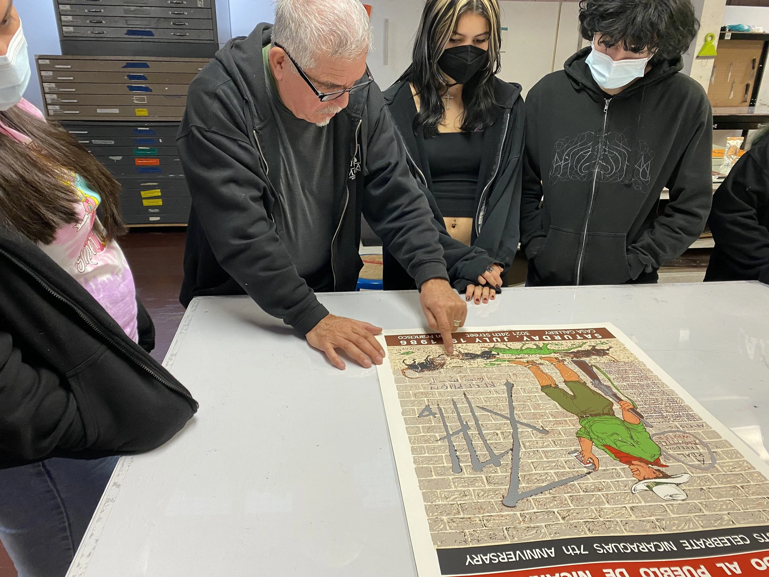 By partnering with community artists, leaders, and mental health professionals youth engaged in informed discussions on social issues from a restorative community healing perspective. These discussions on social justice issues influenced the body of work created by students utilizing public art methods such as, but not limited to: Screenprinting, Relief Printmaking, Stenciling, Murals/Graffiti, etc. Final works were then presented at Puerto Alegre giving youth the opportunity of having an art show in their neighborhood.