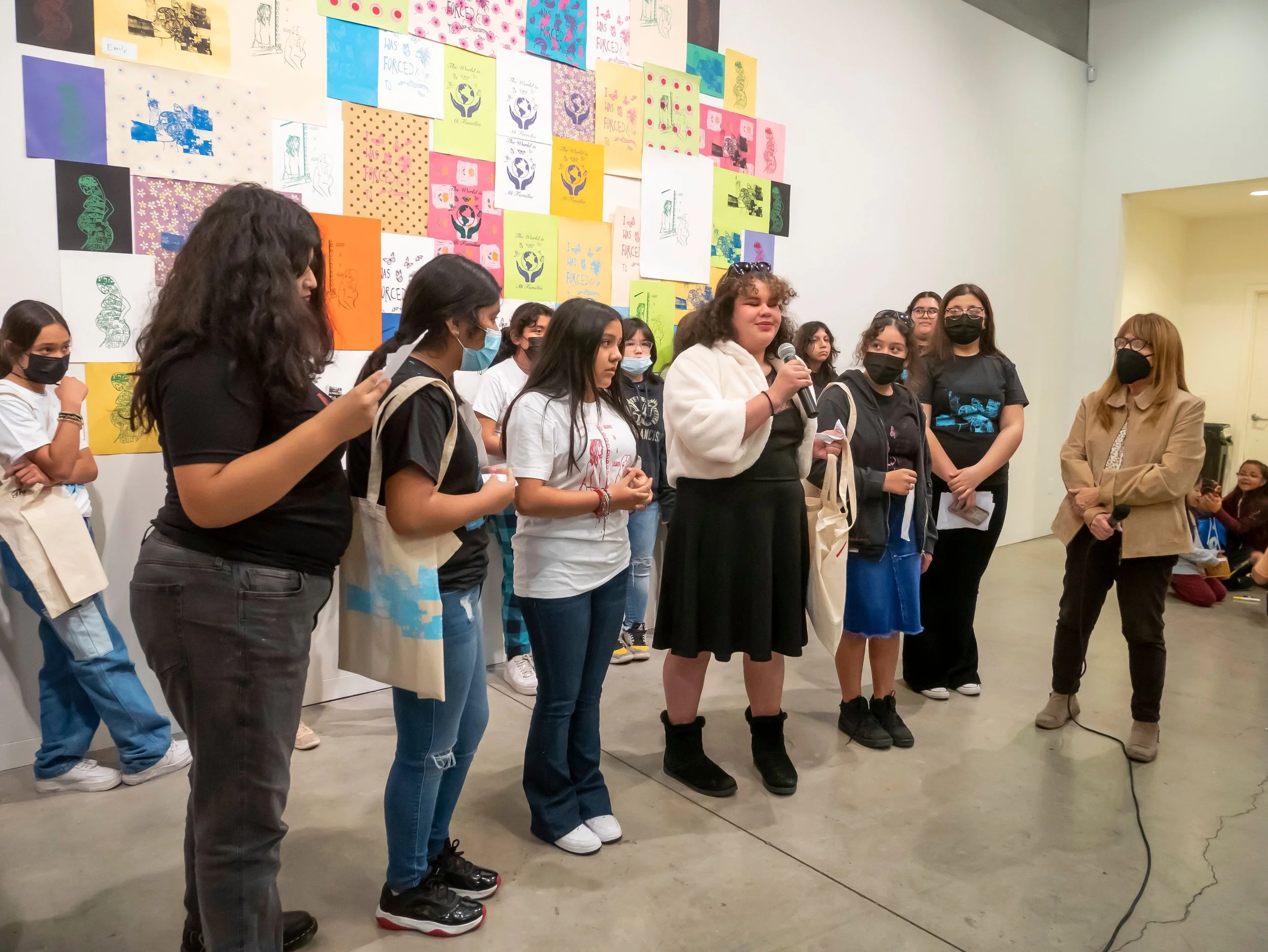 As part of our last class students had the opportunity to showcase and speak on the artwork and lessons learned from the class. Students decided to title the show "The World is Mi Familia" after reflecting on our class altar and what we were able to accomplish working collectively.
