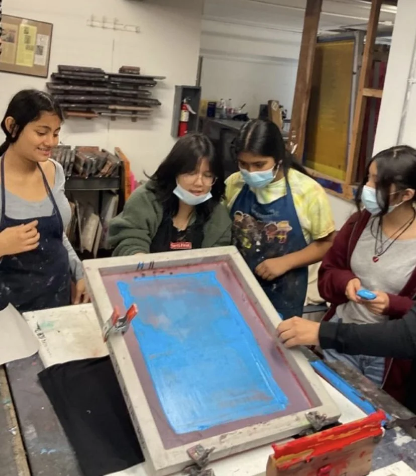 We began by connecting with our ancestors by building an altar for Dia de Los Muertos. We then explored issues that we felt passionate about in order to create and screenprint our own activist designs, and concluded the class with public art and stenciling.