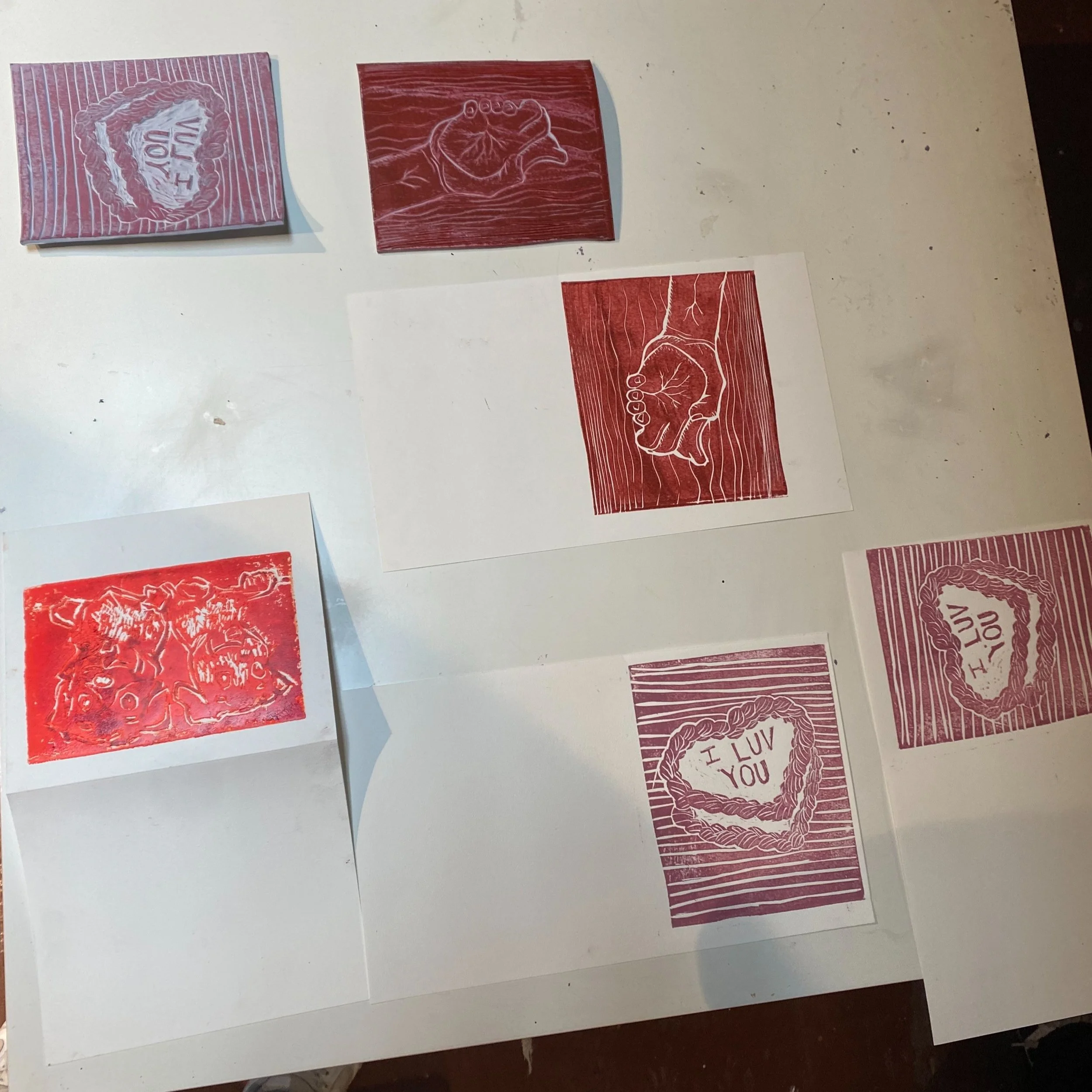 I was able to share my relief printmaking process with them showing them how to go about this method at home by “diy-ing” their process while providing them the opportunity to use tools provided by Mission Grafica a printmaking studio.